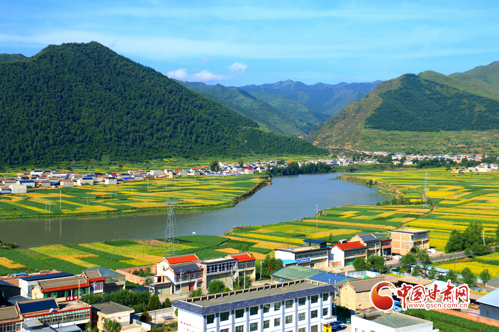 盛夏時(shí)節(jié),岷縣十里鎮(zhèn)洮河兩岸的油菜花競(jìng)相綻放,與民居、山川、林地、豐收在望的各類(lèi)中藥材相映,構(gòu)成了一幅生態(tài)宜居的田園畫(huà)卷,美不勝收。