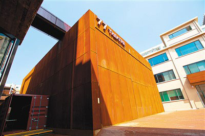 沿著園區(qū)里迂回旋轉(zhuǎn)的鋼梯來到樓頂,眼前豁然開朗——與園區(qū)一街之隔有中國美術(shù)館、三聯(lián)書店,向西是北大紅樓舊址,向南是北京人民藝術(shù)劇院,向北則是中央戲劇學(xué)院。“我們在調(diào)研中發(fā)現(xiàn),周邊戲劇、影視資源非常豐富,于是考慮將園區(qū)定位與東城區(qū)推進(jìn)‘戲劇之城’建設(shè)發(fā)展的方向相契合。”77文創(chuàng)園運(yùn)營方、東方道樸公司總經(jīng)理李明說。