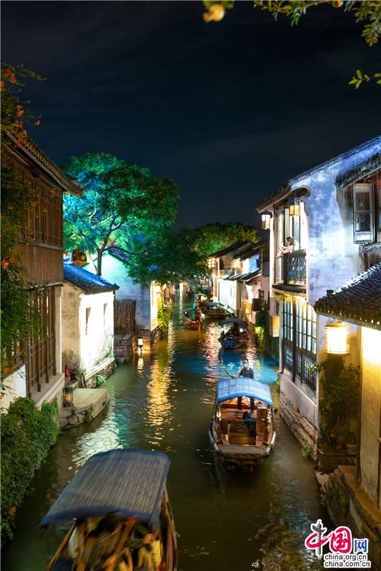 宋朝時(shí)候,宵禁解除,每至深夜,燈火通明。如今周莊的夜色,亦是在光影中沉醉,水影搖曳間,畫(huà)船枕眠。這里,可以陽(yáng)春白雪,不食煙火;也可以徹夜不歇,最懂人間。這場(chǎng)周莊的溫柔夢(mèng),將一直編織下去……澤國(guó)溫柔的清風(fēng),夜間可愛(ài)的彎月,若能與你共賞,那便再無(wú)遺憾。歌里唱,不懼怕,天涯路長(zhǎng),甘為你,披滿身風(fēng)霜,請(qǐng)君,入夢(mèng)。(尤紫璇 周宣)