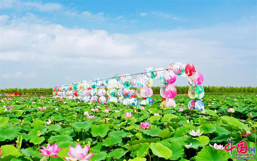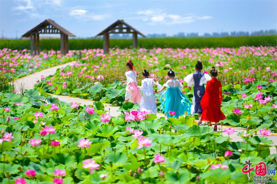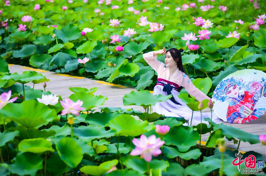 寧夏沙湖: 接天蓮葉無窮碧 國風(fēng)漢服映荷塘(圖)