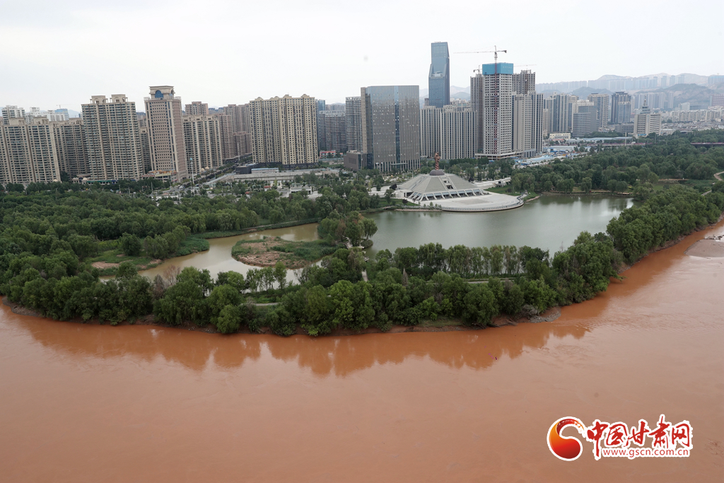 近日,受降水天氣影響,黃河蘭州段仿佛成“紅河”,河水與沿岸蔥郁的濕地公園更顯風(fēng)致,半是青綠半是黃,別有一番情趣。