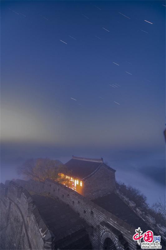 10月31日凌晨,靜謐星空下的金山嶺長城。