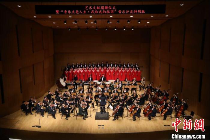 國家圖書館重要藝術(shù)文獻(xiàn)捐贈(zèng)儀式暨“音樂點(diǎn)亮人生·我和我的祖國——音樂沙龍?zhí)貏e版”活動(dòng)3日晚在國圖藝術(shù)中心·音樂廳舉辦。國家圖書館黨委書記、副館長(zhǎng)魏大威接受捐贈(zèng),并為捐贈(zèng)人代表中央民族歌舞團(tuán)民樂團(tuán)團(tuán)長(zhǎng)馬蘭花頒發(fā)捐贈(zèng)證書。