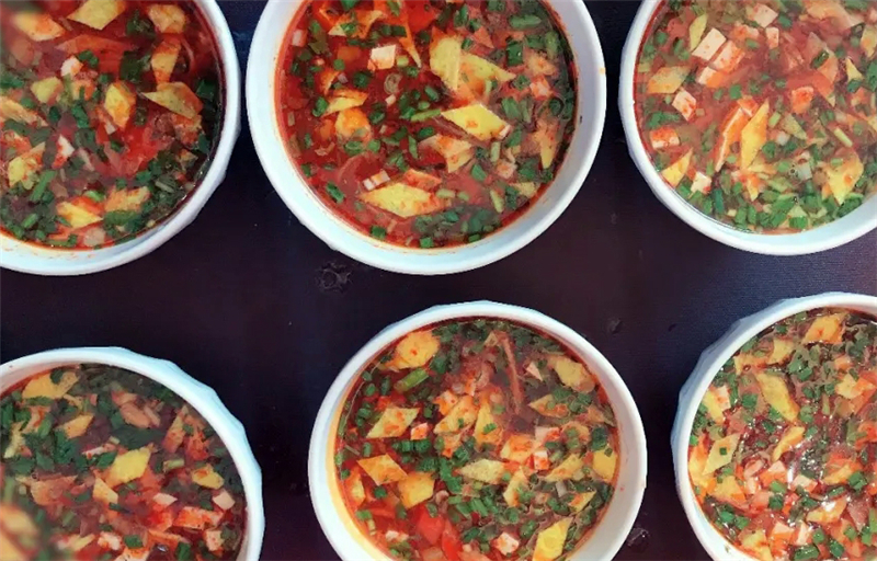 盛一碗細(xì)面,再澆些許酸湯,酸中帶辣、柔軟耐嚼、湯香撲鼻,開(kāi)胃爽口、色香味俱佳。特別是夏季時(shí)分,一碗酸湯面絕對(duì)是開(kāi)胃醒腦又提神的不二之選。