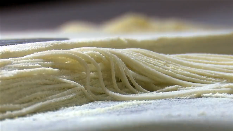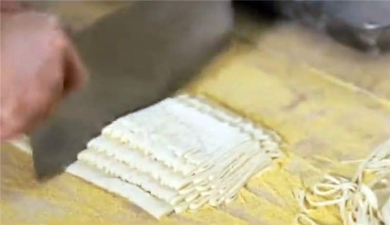 揉面最為關(guān)鍵,揉好后便是切了,靈臺(tái)方言稱之為“犁”,講究眼到、心到、手到,寬窄相等,粗細(xì)合適。