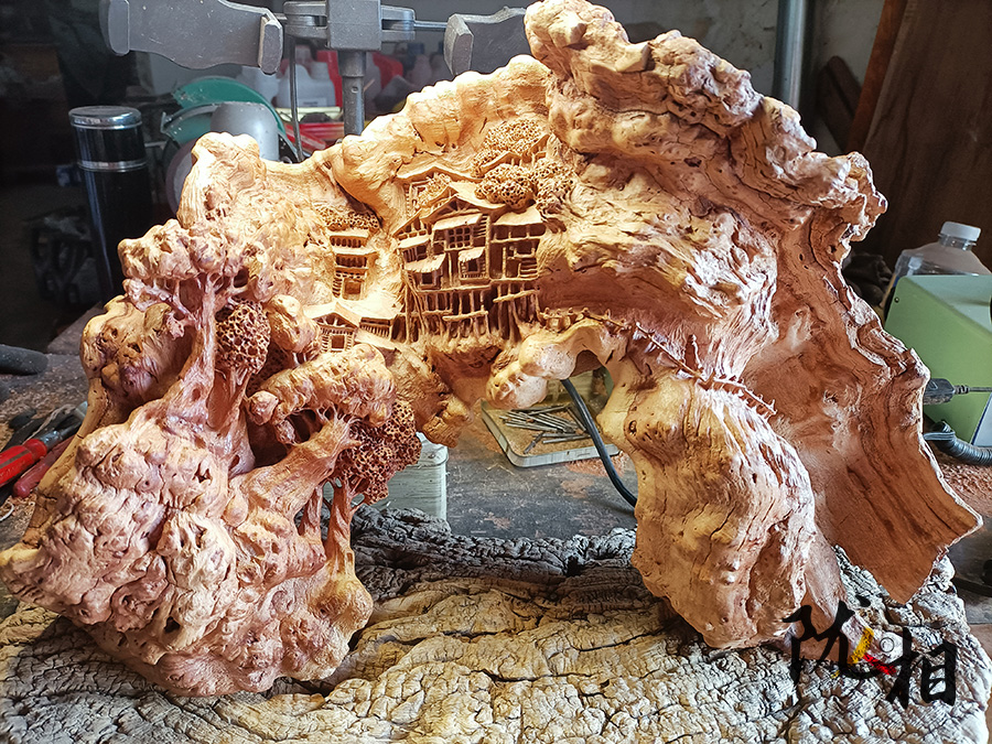 “根雕之美,七分天成,三分雕琢。雕刻過(guò)程中不宜破壞太大,要做到工蘊(yùn)于材,盡量貼近自然,但即便雕功只占三分,可也不是容易的事”。
