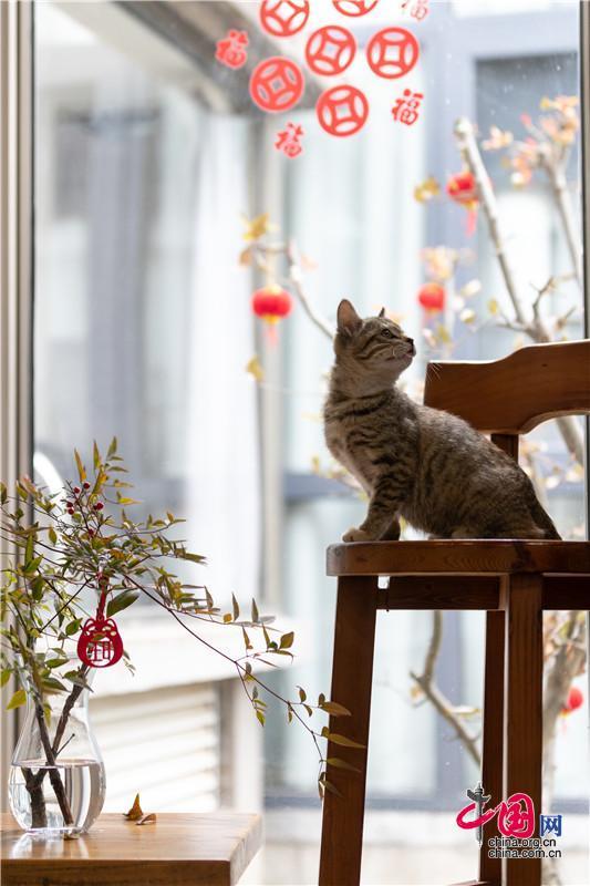 新剪的福字貼滿窗上檐下,人們隔著玻璃對望,會(huì)心一笑。