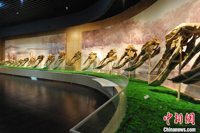 2020年,在位于甘肅臨夏州和政縣的古動物化石博物館內(nèi),拍攝世界上最豐富的鏟齒象化石。(資料圖) 和政宣傳部供圖