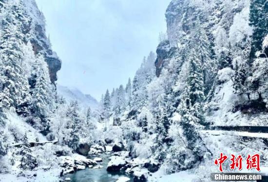 3月底,甘肅甘南藏族自治州卓尼縣大峪溝被一場春雪覆蓋,紛紛揚(yáng)揚(yáng)的雪花勾勒出一幅意境深遠(yuǎn)的水墨丹青畫。
