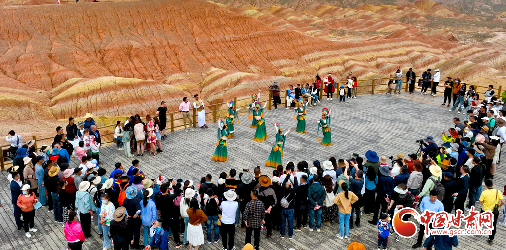 5月1日,甘肅張掖七彩丹霞旅游景區(qū)內(nèi)游人如織,來自全國各地的18000多名游客慕名前來,欣賞獨特的丹霞地貌,領略大自然雄奇壯觀的景色。