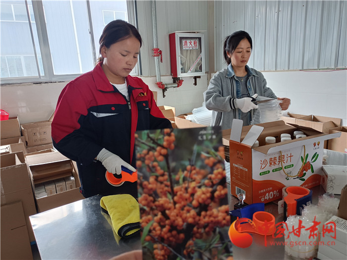 在甘肅艾康沙棘制品有限公司的電商包裝盒中,都會(huì)放一張小果沙棘掛滿枝頭的照片,這些漳縣人民致富的金果果,滿懷誠(chéng)意來(lái)到你身邊,帶著原生態(tài)好味,也帶來(lái)質(zhì)樸群眾的希望。