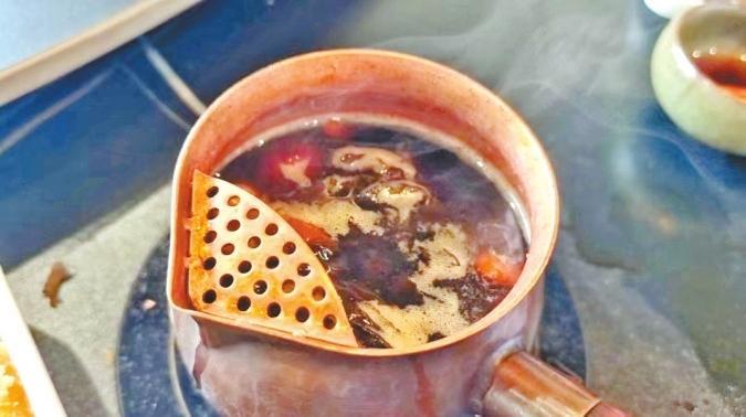 “‘茶圣’陸羽的《茶經(jīng)·五之煮》記載,煮茶的時(shí)候會放蔥、姜、棗、橘皮、茱萸、薄荷等佐料,所以現(xiàn)在罐罐茶所添加的配料,如紅棗、枸杞、桂圓、葡萄干、菊花、冰糖等,其實(shí)就是最原始的煮茶法的延續(xù)。”唐陳虓說。