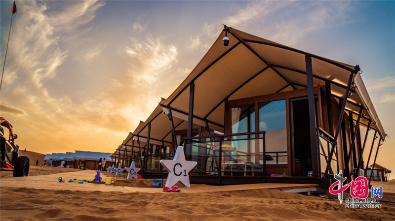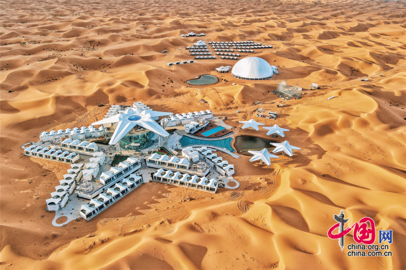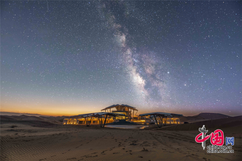 沙坡頭旅游區(qū)依托良好的生態(tài)資源,打造了國內(nèi)首個以沙漠觀星為主題打造的酒店——星星酒店,在蒼茫遼闊的沙漠之中,這座造型獨(dú)特的酒店仿佛星星一般,閃爍其中。