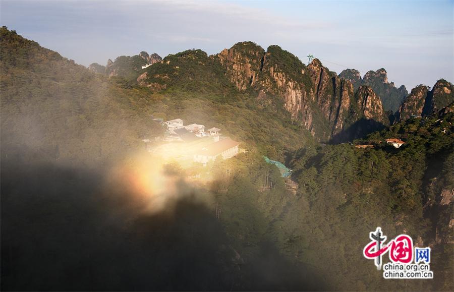 9月7日,安徽黃山風景名勝區(qū)云霧飄渺仙氣飄飄,如同仙境,云霧在初升的陽光照射下,神奇的“佛光”景象出現(xiàn)在人們眼前,讓來黃山的游客大飽眼福,贊嘆大自然的鬼斧神功。