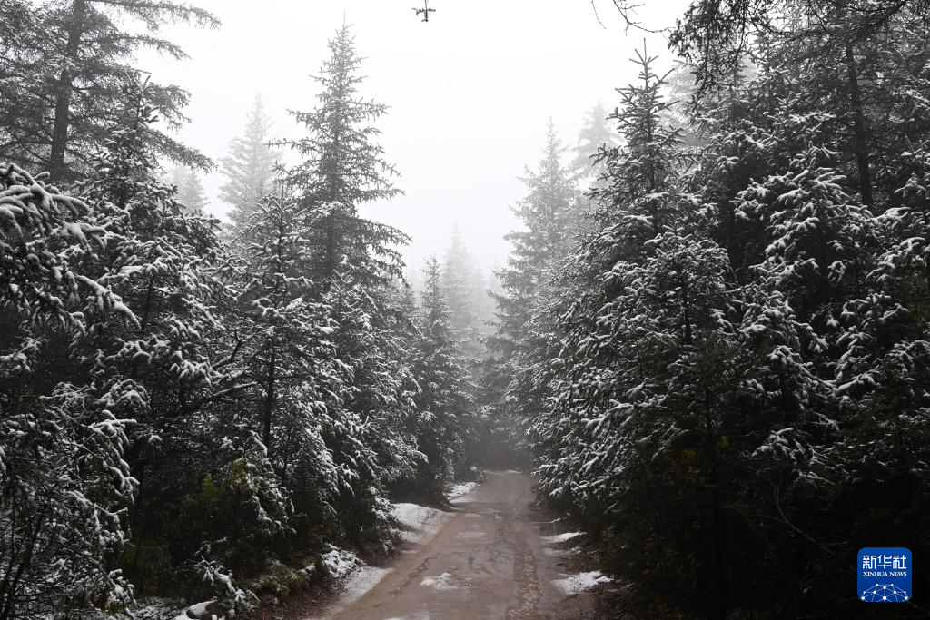 金秋時節(jié),甘肅省張掖市肅南裕固族自治縣境內(nèi)的祁連山脈迎來一場降雪,云杉翠柏與皚皚白雪相映成趣,美不勝收。