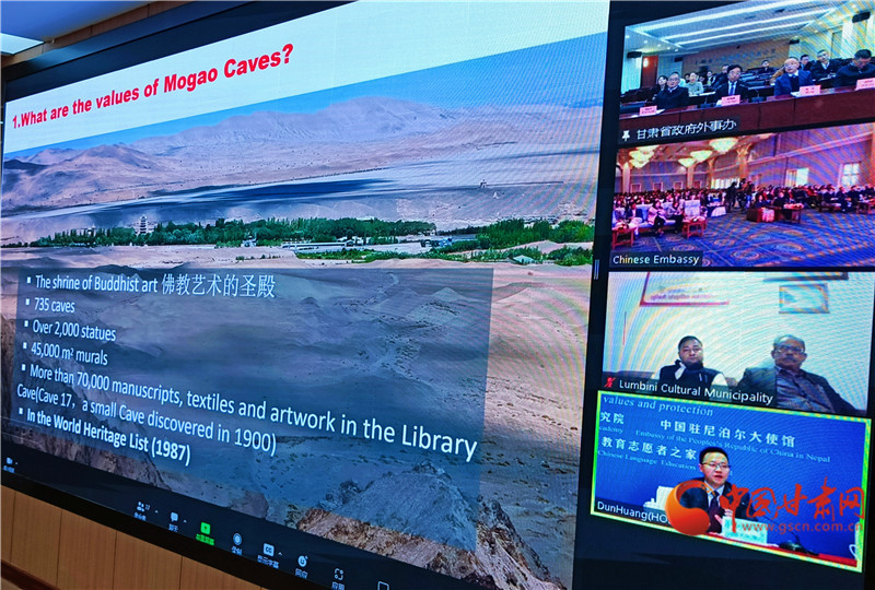 中國甘肅網(wǎng)12月4日訊(西北角·中國甘肅網(wǎng)記者 宋芳科 )12月4日,“敦煌文化環(huán)球連線——走進(jìn)尼泊爾”在蘭州、敦煌、尼泊爾三地線上線下同步舉辦。中國駐尼泊爾大使陳松、尼泊爾教育與科技部部秘普拉米拉·黛維·巴吉拉恰利亞,酒泉市委常委、敦煌市委書記石琳、尼泊爾藍(lán)毗尼文化市市長薩魯丁·穆薩爾曼等應(yīng)邀出席活動并講話,活動由甘肅省政府外事辦主任張寶軍主持。