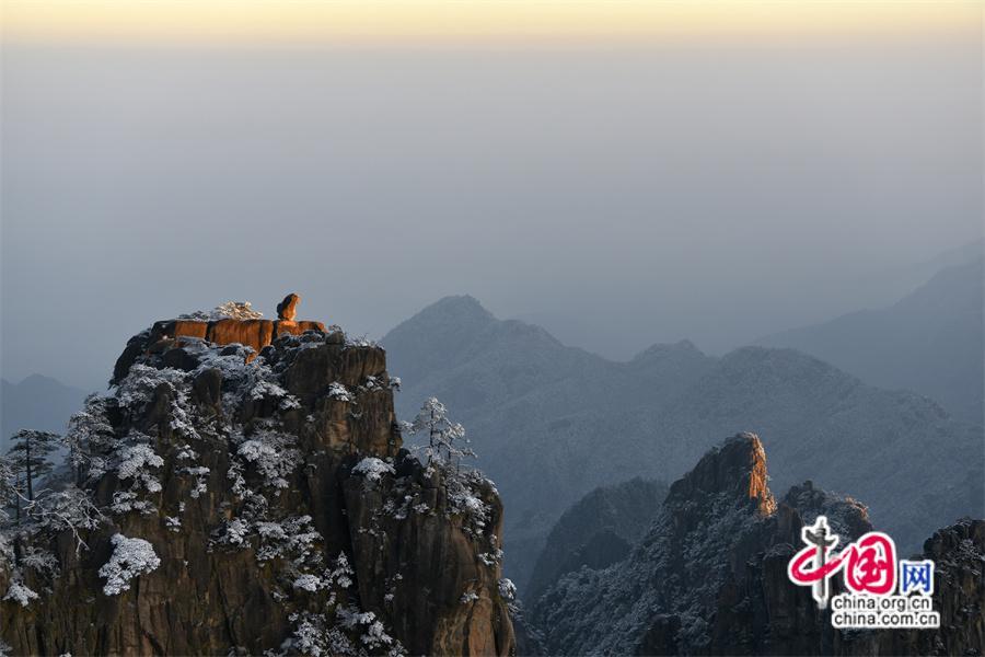 2024年1月2日夜,黃山下了新年的第一場(chǎng)初雪。1月3日早雪后的黃山銀裝素裹,在陽光下晶瑩剔透。本組照片拍攝于獅子峰。獅子峰在黃山后山的北海景區(qū),這里群峰競(jìng)秀、巧石眾多,清涼臺(tái)、猴子觀海都這座山上,“不到獅子峰不見黃山蹤”是北海的風(fēng)景窗。