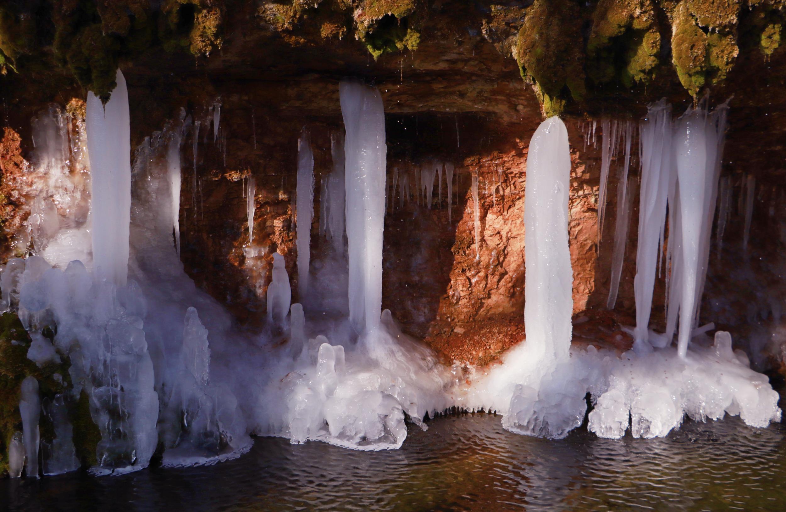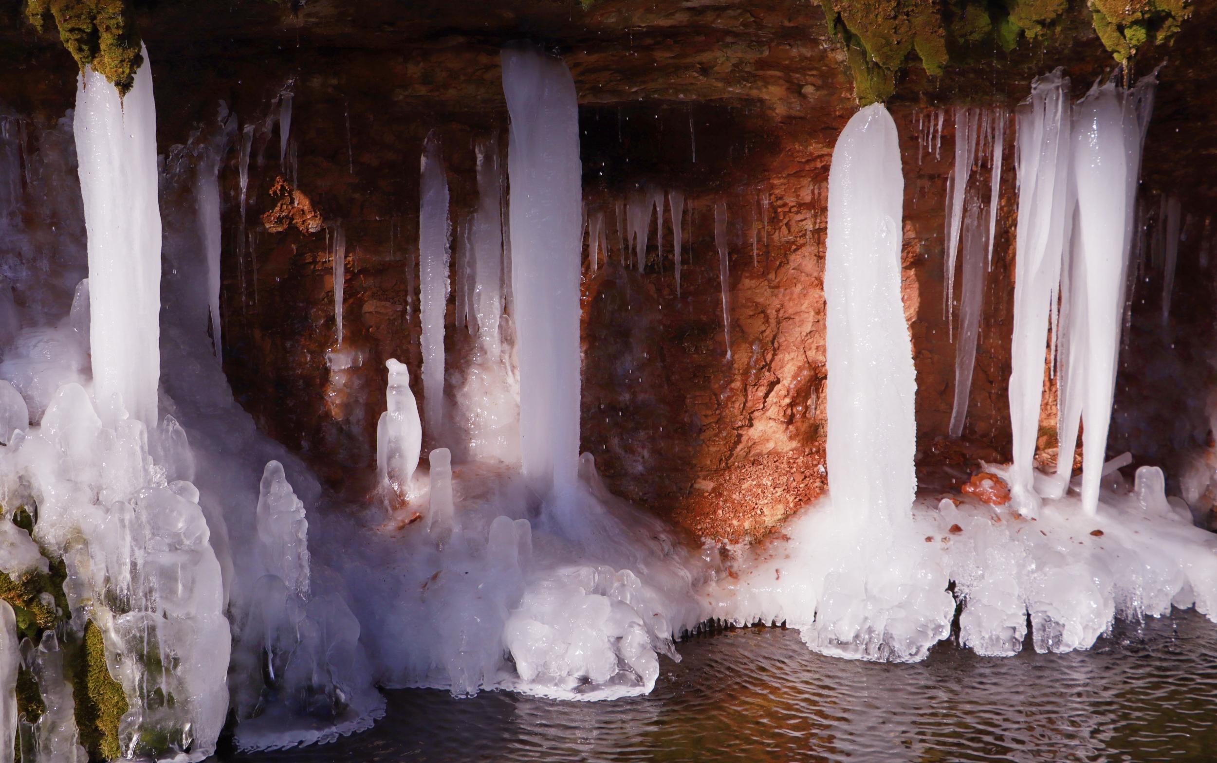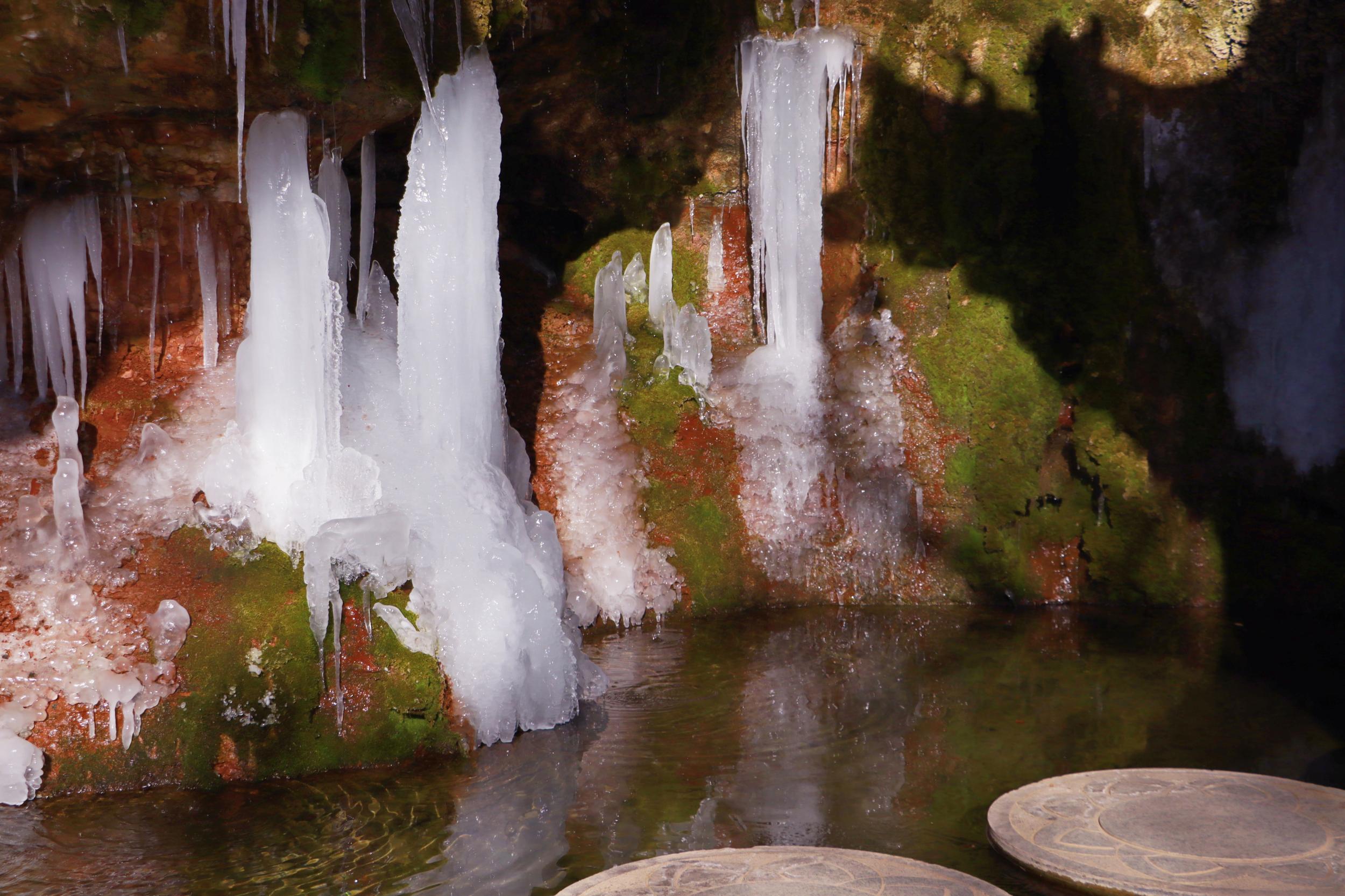 連日來,崇信縣持續(xù)降溫,AAAA級旅游景區(qū)龍泉寺泉水凝結成奇特秀麗的冰掛、冰柱、冰花美景,懸掛于山間,如萬把銀色寶劍垂吊,展現(xiàn)著冰肌雪骨的風姿,似盞盞熒光閃爍,在陽光的照耀下熠熠生輝、耀眼奪目,引來不少游客拍照觀賞。(崇信縣融媒體中心記者:孫淑霞  張百耀)