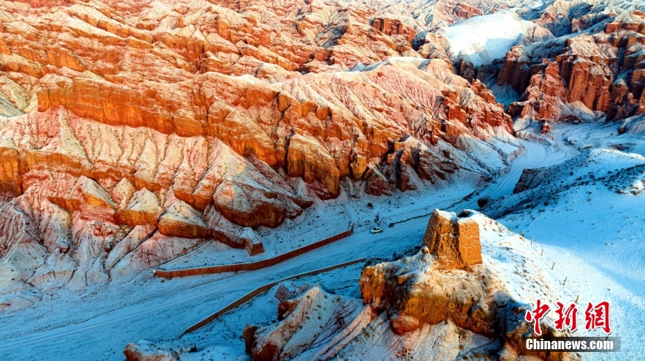 1月24日,雪霽初晴的甘肅省張掖市臨澤縣板橋鎮(zhèn)境內(nèi)的紅溝丹霞銀裝素裹,雪景如畫。圖/CNSphoto 楊瀟 攝