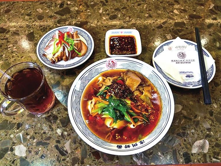 涼州,不僅有悠久的歷史、燦爛的文化,而且有回味無窮的美食。每天中午時分,位于雷臺綜合體的古凉韻“三套車”店里,食客絡(luò)繹不絕。從北京遠道而來的程先生一行四人,特地前來打卡武威的這道特色美食。一碗行面、一盤鹵肉、一杯茯茶的組合,讓他們吃得津津有味。