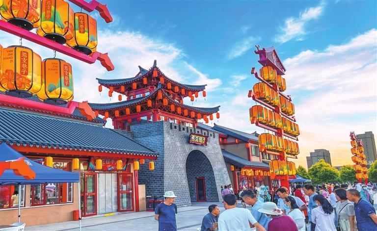 夏日的傍晚,這里格外熱鬧。步入巷內(nèi),穿過仿古牌坊,行走在青石板路上,經(jīng)過新中式仿古的巷子,寬敞的街道兩邊都是仿古的建筑,曲徑通幽處,美食坊,手工作坊,酒吧街,一字兒鋪排開,小攤上當(dāng)?shù)刈灾频纳介?、農(nóng)民自己種的各種蔬菜、自制的各種小工具、精美小籮筐、葫蘆瓢等好多物品勾起了兒時的回憶。