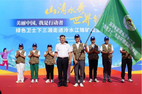 活動現(xiàn)場,與會領(lǐng)導(dǎo)還為冷水江綠色衛(wèi)士生態(tài)環(huán)境志愿服務(wù)隊(duì)進(jìn)行了授旗。