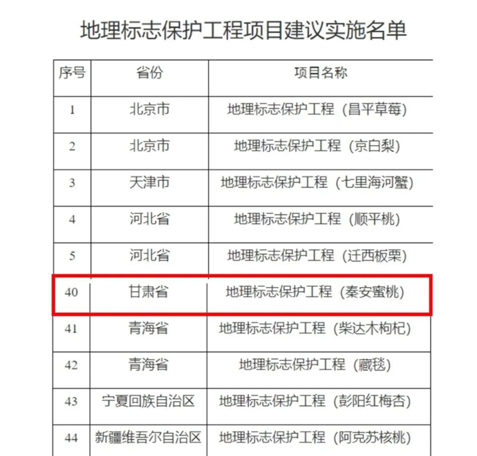 秦安蜜桃上榜2024年國家級地理標(biāo)志保護(hù)工程實(shí)施名單