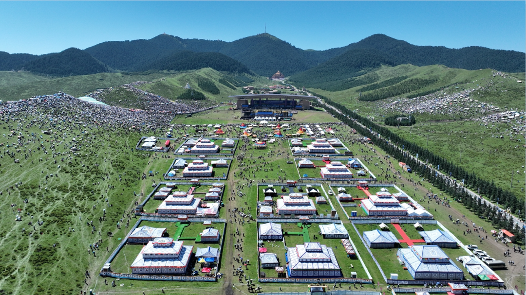 盛夏的甘南到了如詩如歌的最美季節(jié),艷陽高照下的合作當(dāng)周草原天藍(lán)草碧格桑花開,數(shù)百頂潔白的帳篷和盛裝出行的甘南各族群眾將這里裝扮成色彩斑斕的最美畫卷。
