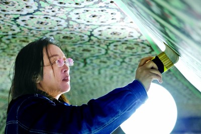 壁畫修復(fù)是一項極其精細(xì)的工作,需要智慧和耐力。柴宗香做壁畫保護修復(fù)技師14年了,她常在一個洞窟里戴著護膝,穿著棉衣,從早干到晚。