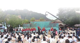 主詩會現(xiàn)場,氣勢恢弘的武術(shù)表演,精彩絕倫的拿手絕技,美輪美奐的崆峒山景,蕩氣回腸的武林唱響,組成一幅幅震天動地的美麗畫卷。伴著《少林,少林》《中國功夫》的歌聲,中岳武校功夫表演團數(shù)套行云流水的少林武術(shù),豪氣干云、笑逸蒼茫,一招一式古風流存,展現(xiàn)出少林武者英雄豪杰的氣魄與豪邁,演繹了少林武魂的禪武精神。這些平常只能在電影或電視中才可以看到的少林武功,而今就在眼前,觀眾們紛紛報以熱烈掌聲。武與舞的“對話”,武與舞的“相遇”詮釋鐵血丹心、俠骨柔情。由平?jīng)鰫郯鹏嵛璧概嘤栔行膸砦璧浮锻跄敢寡纭罚ㄟ^王母夜宴的歡樂場景,將西王母和周穆王相愛的神話故事深情講說,情濃處,千回百轉(zhuǎn),柔腸百結(jié)。一曲《刀劍如夢》穿越時空而來,歌手用獨特的嗓音,將這首歌演繹得淋漓盡致,將觀眾帶入了一個感性而深沉的氛圍,帶領我們回到了那個充滿江湖氣息的瑰麗世界。“滄海一聲笑,滔滔兩岸潮,浮沉隨浪只記今朝,蒼天笑,紛紛世上潮,誰負誰勝出天知曉滄海笑……”一曲《滄海一聲笑》,營造了一股濃濃的中國俠士逍遙風,旋律步步低落,先抑后揚,峰回路轉(zhuǎn),觀眾隨著音樂的意象一步步陷入蒼涼和寂寥中。隨著歌曲的高跌起伏,一個個精彩的片段定格為現(xiàn)場觀眾一張張手機影像。