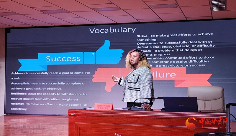 外籍教師Catherine Seda(凱瑟琳-塞達(dá))以其深厚的英語專業(yè)素養(yǎng)和生動(dòng)的學(xué)習(xí)和生活情境,為在場(chǎng)的師生們帶來了一場(chǎng)語言學(xué)習(xí)盛宴,激發(fā)了同學(xué)們對(duì)英語學(xué)習(xí)的濃厚興趣。