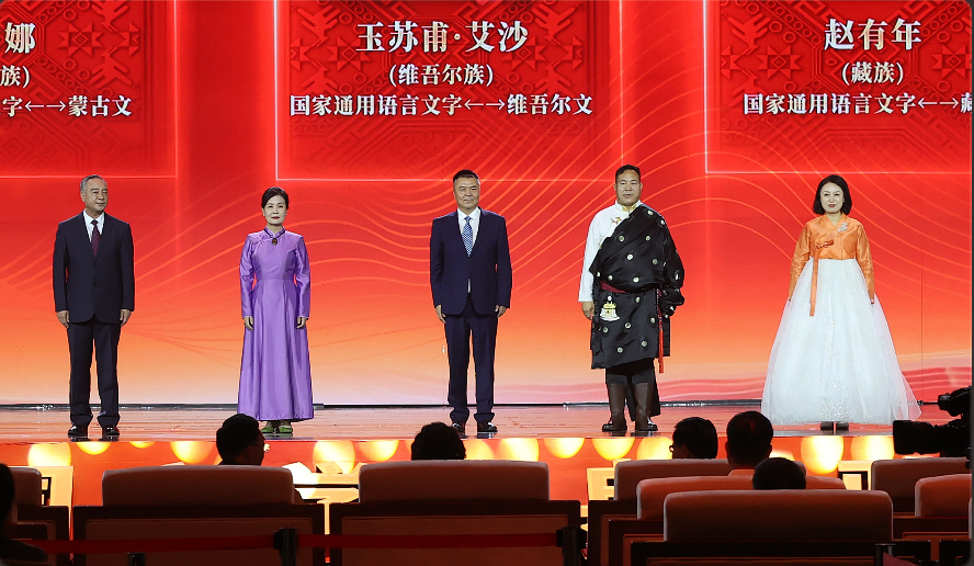 艾布、朵日娜、玉蘇甫·艾沙、趙有年、鄭風(fēng)淑領(lǐng)取第十三屆全國(guó)少數(shù)民族文學(xué)創(chuàng)作駿馬獎(jiǎng)翻譯獎(jiǎng)。