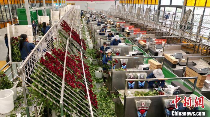 近年來,當(dāng)?shù)靥岢?ldquo;打造魅力花都、建設(shè)公園城市”,聚焦“浪漫經(jīng)濟(jì)”,大力發(fā)展鮮切花產(chǎn)業(yè)。交通便利、人力資源富集是吸引這座“超級(jí)玫瑰工廠”國際鮮花港落戶臨夏的主因。