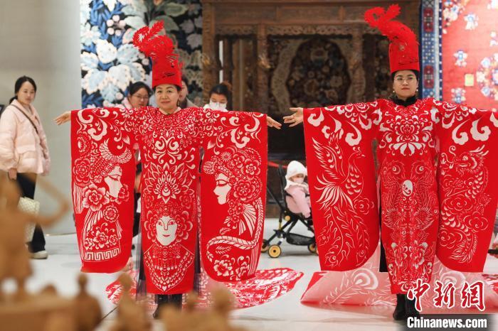 原標(biāo)題:甘肅蘭州:剪紙漢服作品《龍鳳呈祥》《戲韻華裳》亮相