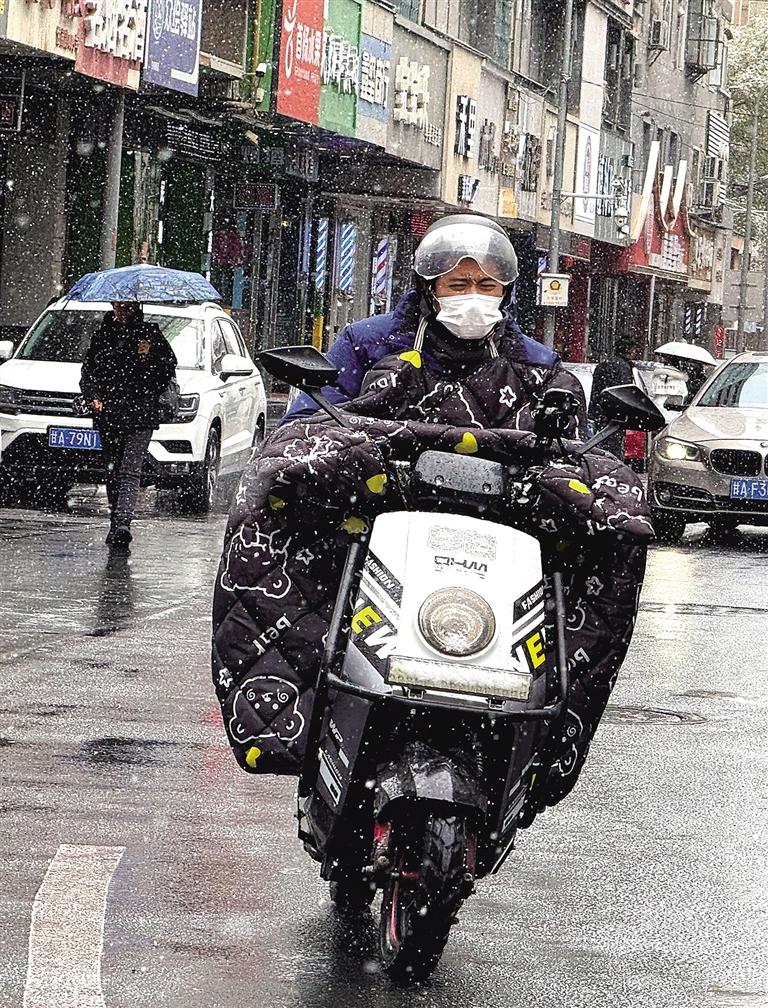 11月24日,一位市民在雪中騎行。蘭州日報(bào)社全媒體記者 甘霖 攝