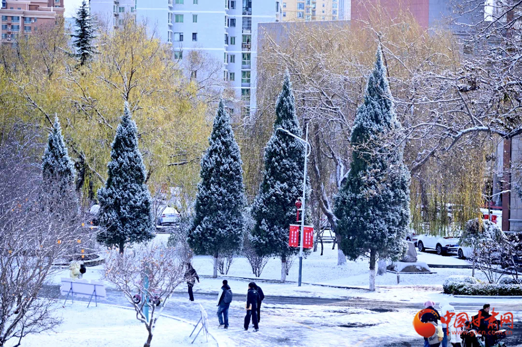 初雪似無(wú)數(shù)精靈,校園樹木如瓊枝玉葉,每一片雪花都融在蘭州城市學(xué)院的角落里。