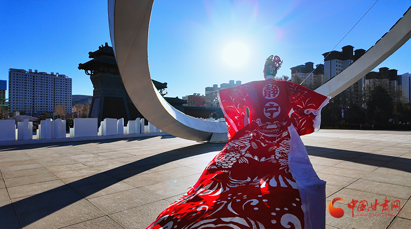 在靜寧縣成紀(jì)文化城里,兩名模特身著“盛裝”翩翩起舞,盡情展示自信與優(yōu)雅,緩緩走動(dòng)間,靜寧蘋果、靜寧果農(nóng)等元素裝飾的紅色剪紙服飾隨風(fēng)搖曳,讓國(guó)家級(jí)“非遺”——中國(guó)剪紙也流動(dòng)了起來。這精彩的作品展示,來自仇跟銀的妙手。