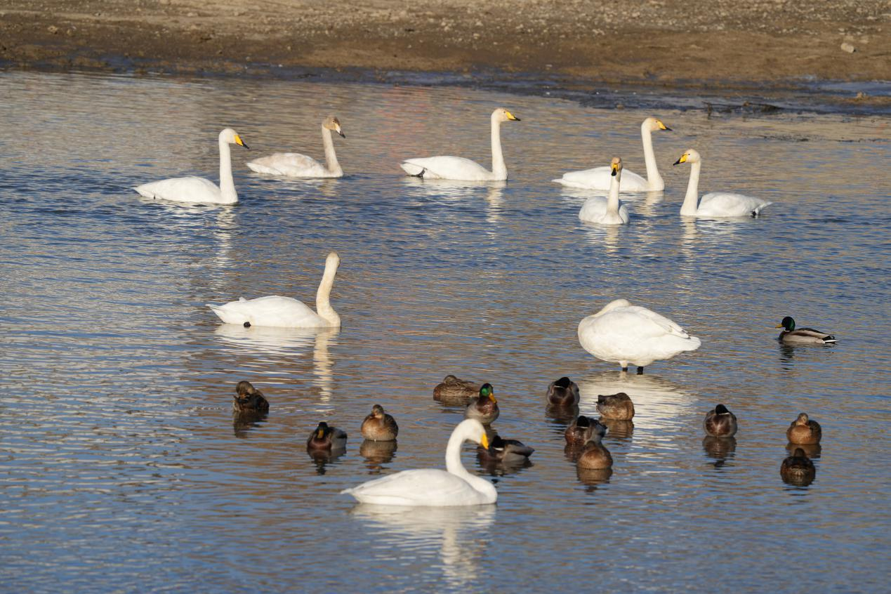 大天鵝正成為額敏冬季旅游的“新名片”,更是引客入額的吉祥鳥。(朱芹 那娥木汗)