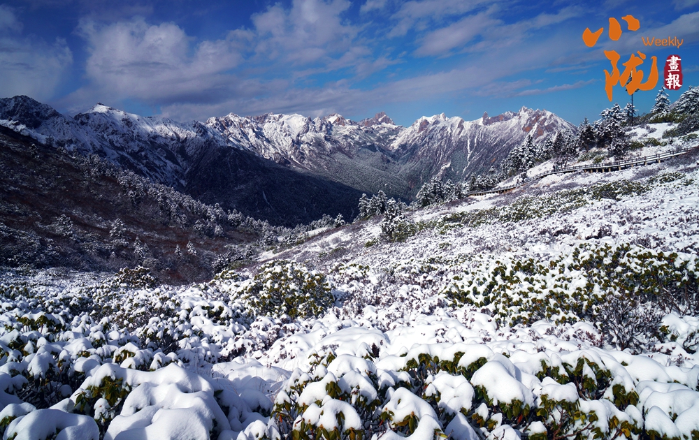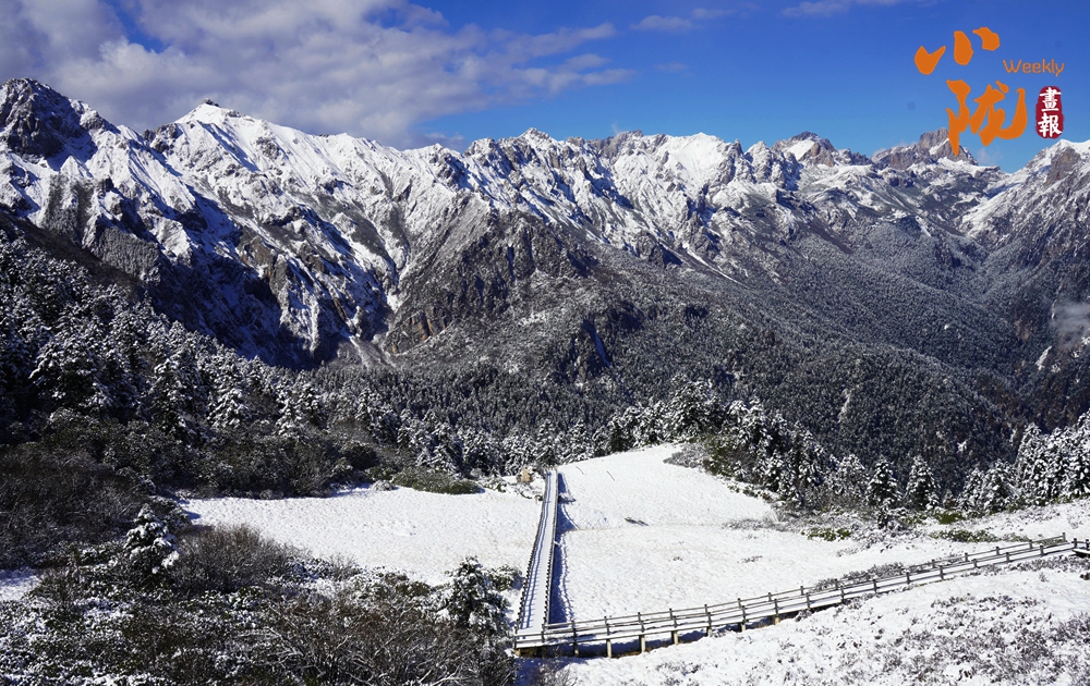 積雪如同軟綿綿的地毯鋪滿了整個官鵝溝,陽光透過云層照射在這片被雪覆蓋的世界,閃爍著溫柔的光芒。