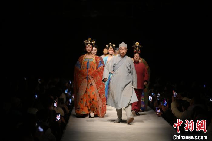 2025年1月9日晚,在甘肅敦煌大型室內(nèi)情景體驗(yàn)劇《又見敦煌》劇場內(nèi),游人在行走中觀看演出。中新社記者 李亞龍 攝