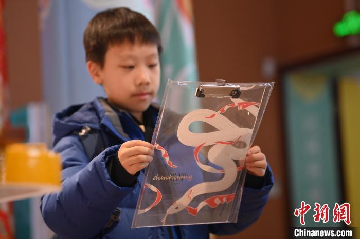 1月10日,在甘肅省敦煌市敦煌博物館內(nèi),游客挑選“蛇”元素文創(chuàng)產(chǎn)品。隨著農(nóng)歷乙巳蛇年臨近,敦煌博物館內(nèi)具有敦煌文化的“蛇”元素文創(chuàng)產(chǎn)品漸熱。中新社記者 李亞龍 攝