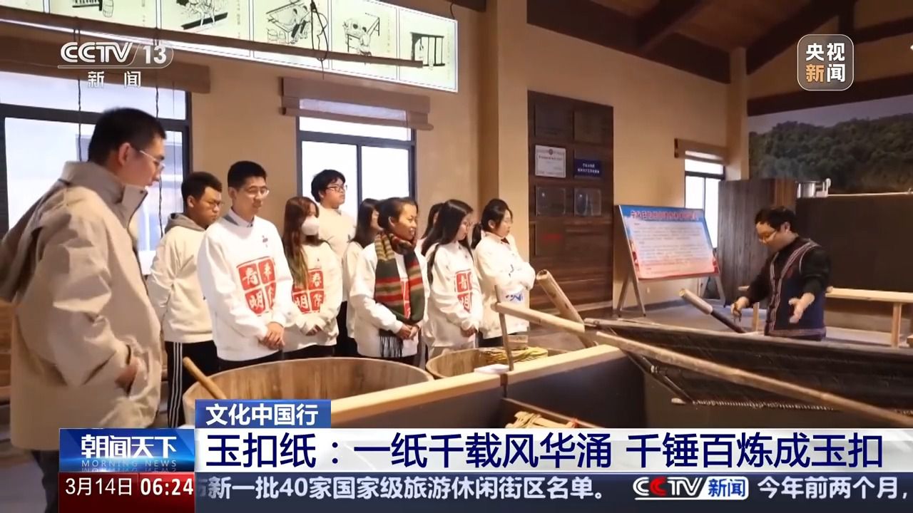 廈門大學(xué)歷史與文化遺產(chǎn)學(xué)院副教授 陳瑤:玉扣紙制作的原料非常單純。就是三種,一個(gè)是竹子嫩竹,第二個(gè)是石灰,第三個(gè)就是清潔的山泉水。基本上是純靠人工來進(jìn)行品質(zhì)的管控。