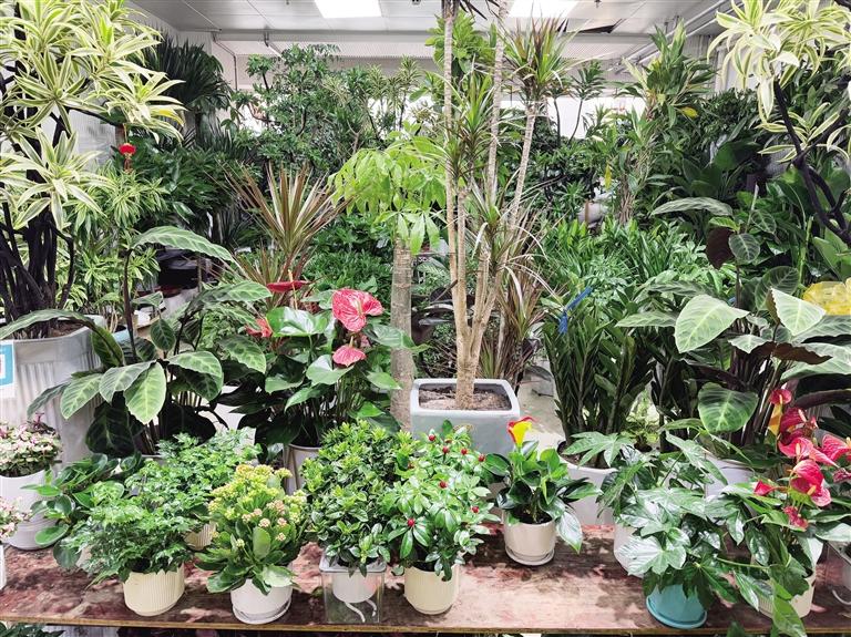踏著初升的朝陽,記者來到雁灘花鳥魚市場(chǎng),陣陣植物清香撲鼻而來,所見是一片生機(jī)盎然的綠意,匯合著潺潺流水聲,仿佛置身大型植物園林。