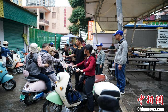 3月16日,云南省紅河州河口縣街頭,數(shù)位越南游客騎著租來的電動(dòng)車游玩。中新社記者  劉冉陽  攝