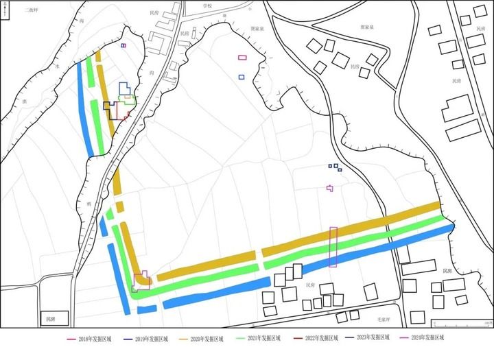 經(jīng)過2018年至2024年的7次考古發(fā)掘,千年塵封的馬家窯文化聚落緩緩浮現(xiàn)。總占地面積達近百萬平方米的聚落由三重“圍壕”環(huán)繞,內(nèi)部房址密布,灰坑、陶窯、墓葬交錯。令人訝異的是,三重平行分布的“圍壕”每條寬達9至11米,內(nèi)、外圈深約3至4米,且并非傳統(tǒng)的圓形或不規(guī)則形,而是規(guī)整的長方形形制,與后世城墻“拐角”結(jié)構(gòu)十分相似。