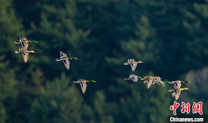 近日,山西晉中左權(quán)縣石匣水庫(kù)綠頭鴨振翅翱翔,翎羽劃開泠泠春水,在華北蒼穹繪就候鳥遷徙的生態(tài)詩(shī)行。該物種對(duì)棲息地環(huán)境極為挑剔,近年來(lái),左權(quán)縣實(shí)施退耕還林、水系凈化等系統(tǒng)性治理,庫(kù)區(qū)水質(zhì)持續(xù)提升,濕地功能逐步恢復(fù),“水清魚躍、草木蔥蘢”的自然畫卷徐徐展開。 張文軍 攝