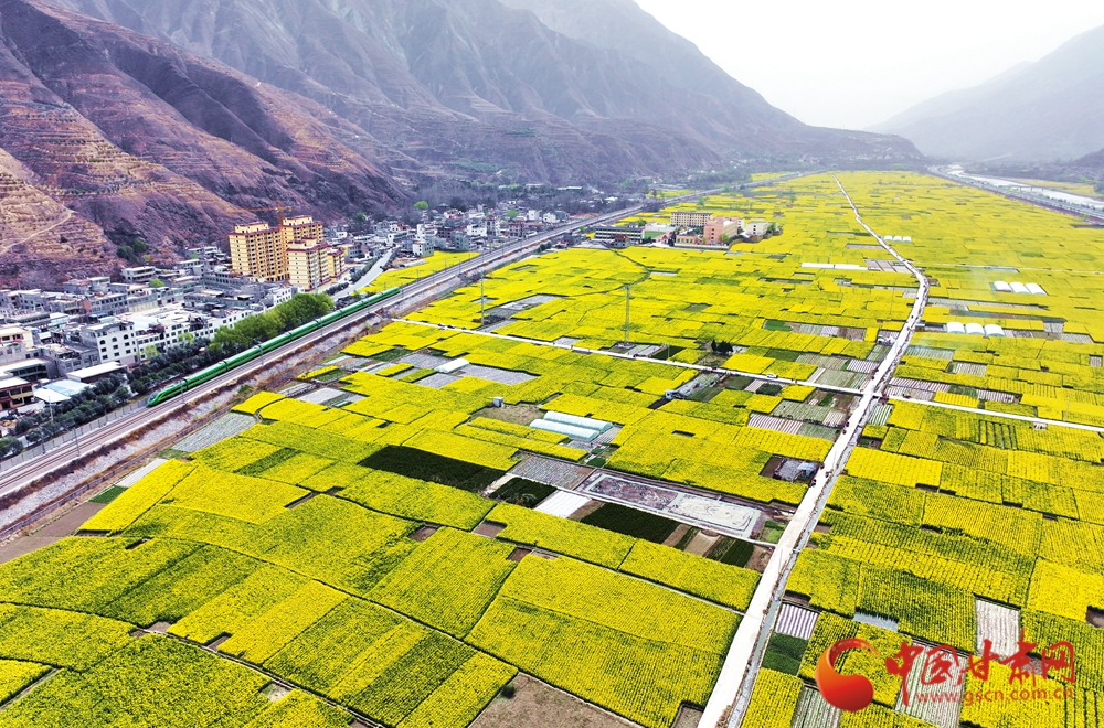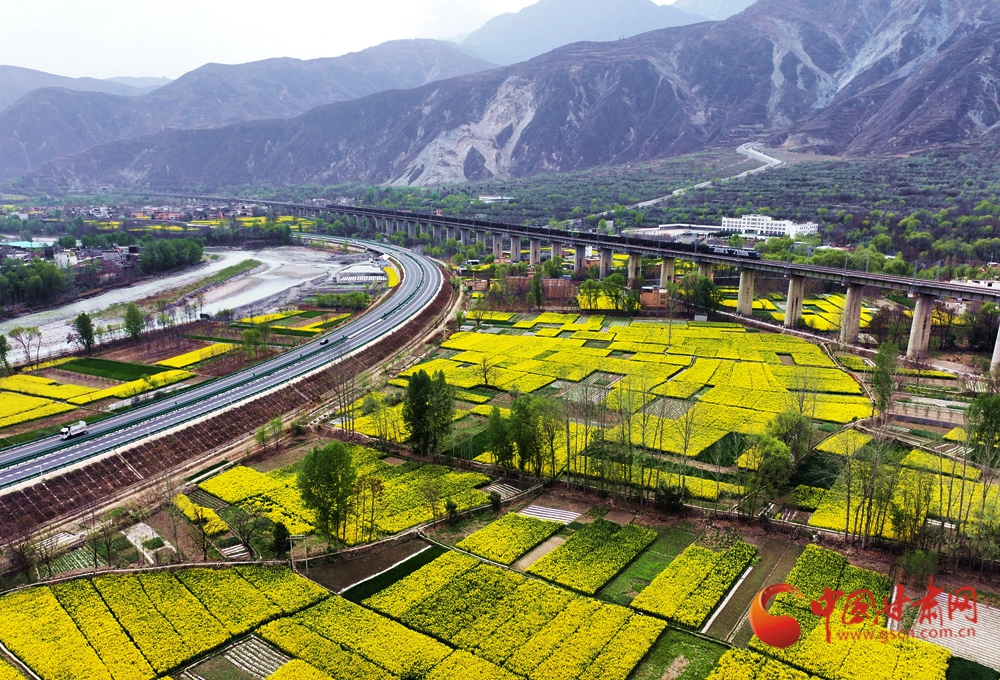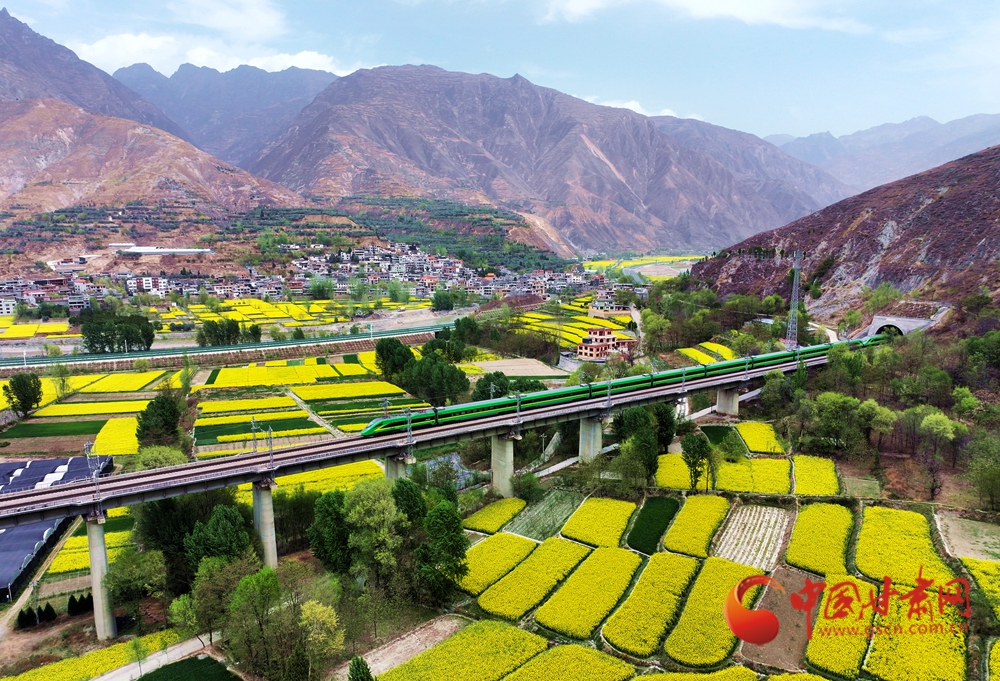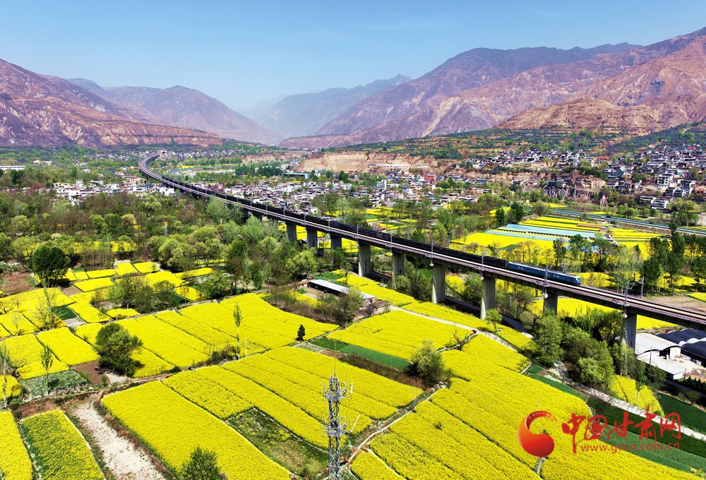 近日,隨著氣溫回升,武都、宕昌白龍江沿岸的油菜花競相綻放,迎來最佳觀賞期,蘭渝鐵路列車在花海中穿梭,宛如一幅絕美的春日畫卷。