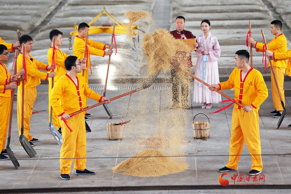 開釀儀式盡顯古樸,釀酒傳承人身著吉服,誦讀酒經(jīng)與祖訓:“德不立者不釀,心不誠者不釀……”并撒糠祈福,敬謝酒祖,隨著開釀聲起,酒匠們有條不紊開動,一锨一鏟,一甑一耙,配合默契,仿佛時光倒流至千年前。