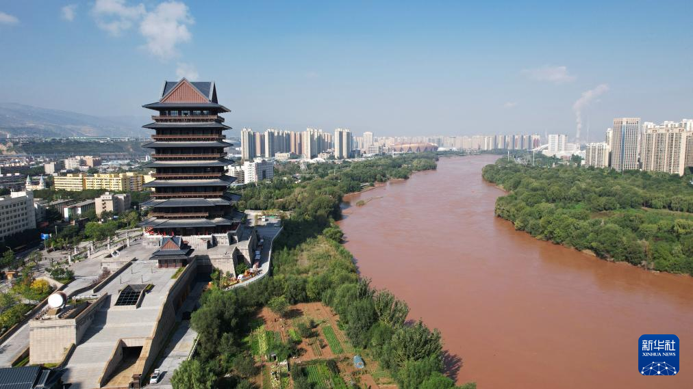 這是位于黃河蘭州段南岸的黃河樓(2024年9月26日攝,無人機(jī)照片)。新華社記者 陳斌 攝