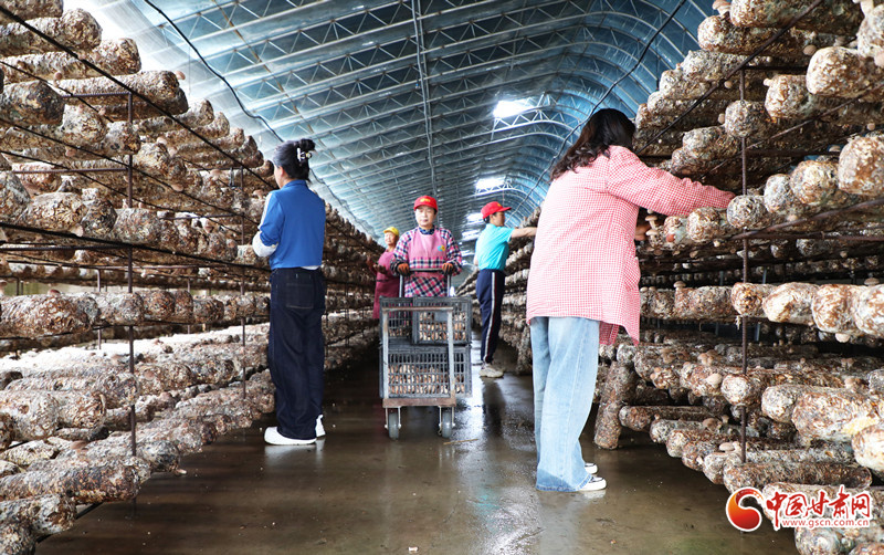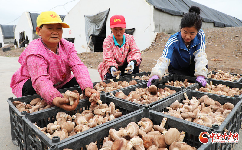 6月26日,在民樂(lè)工業(yè)園區(qū)的一家食用菌生產(chǎn)溫室內(nèi),工人們正在采摘成熟的香菇和靈芝,包裝完成后將運(yùn)往青海、寧夏、新疆等地銷售。